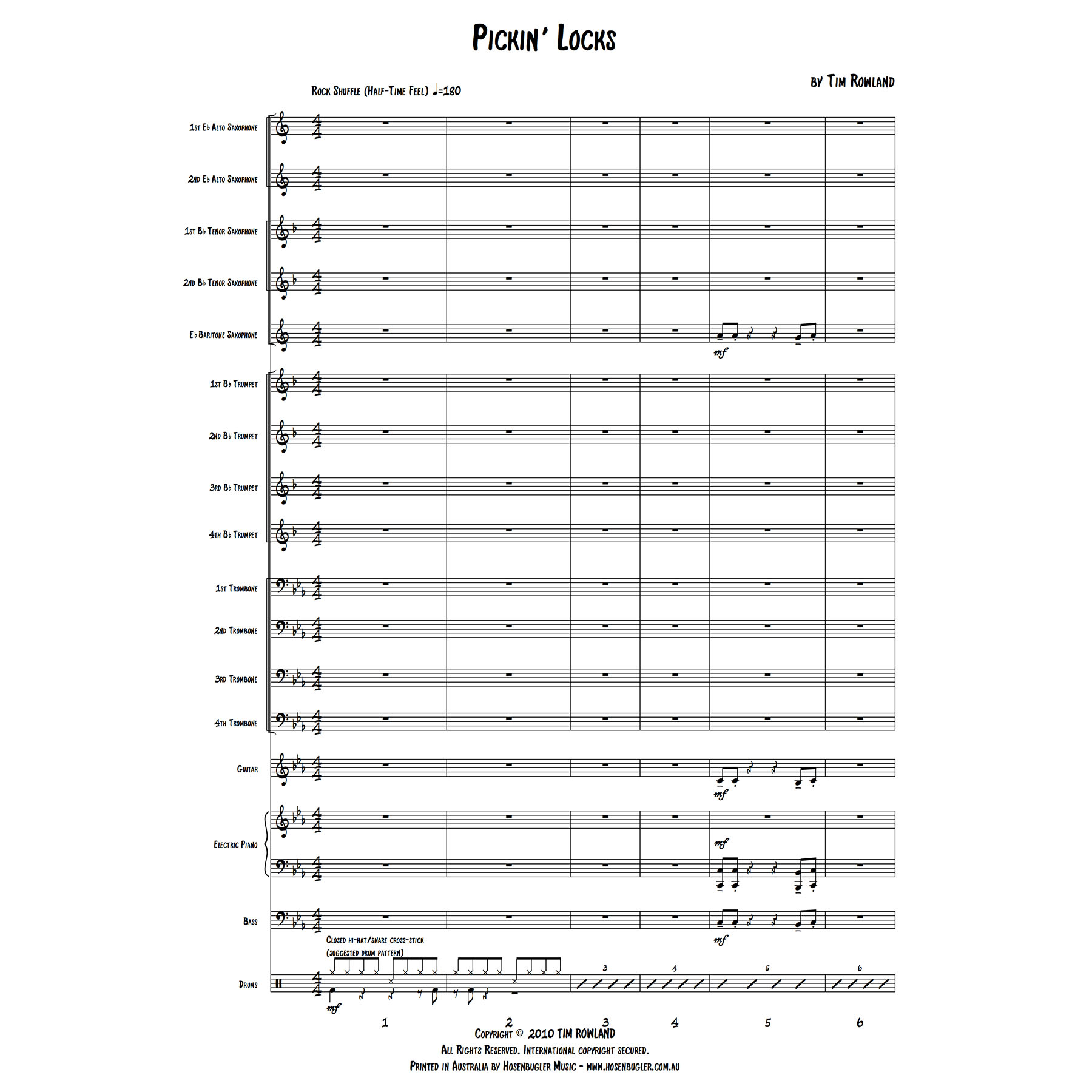 This arrangement of Pickin’ Locks is identical in form of the original concert band version, but for full Big Band instrumentation.